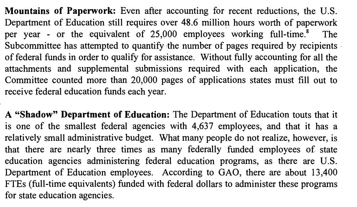 If your problem is just the mere existence of an agency, and not the educational problems that kids are facing, then maybe that is a proof of concept that it doesn’t have to technically exist for the programs to get the money out the door. But again, what is the larger problem that we’re trying to solve, and what is the best way to ensure that kids and parents are getting transparent information and value out of the tax dollars that are going to Washington to fund these programs?